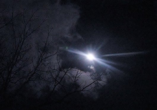 February 7, 2012 and the moon is full, in Paris and in Pennsyltucky.  In Paris, the moonlight is reflecting on the Seine, illuminating the Eiffel Tower and Notre Dame.  Here, it is illuminating the bare tree branches and the muddy ground, while the coyotes howl in the not-too-distant distance.