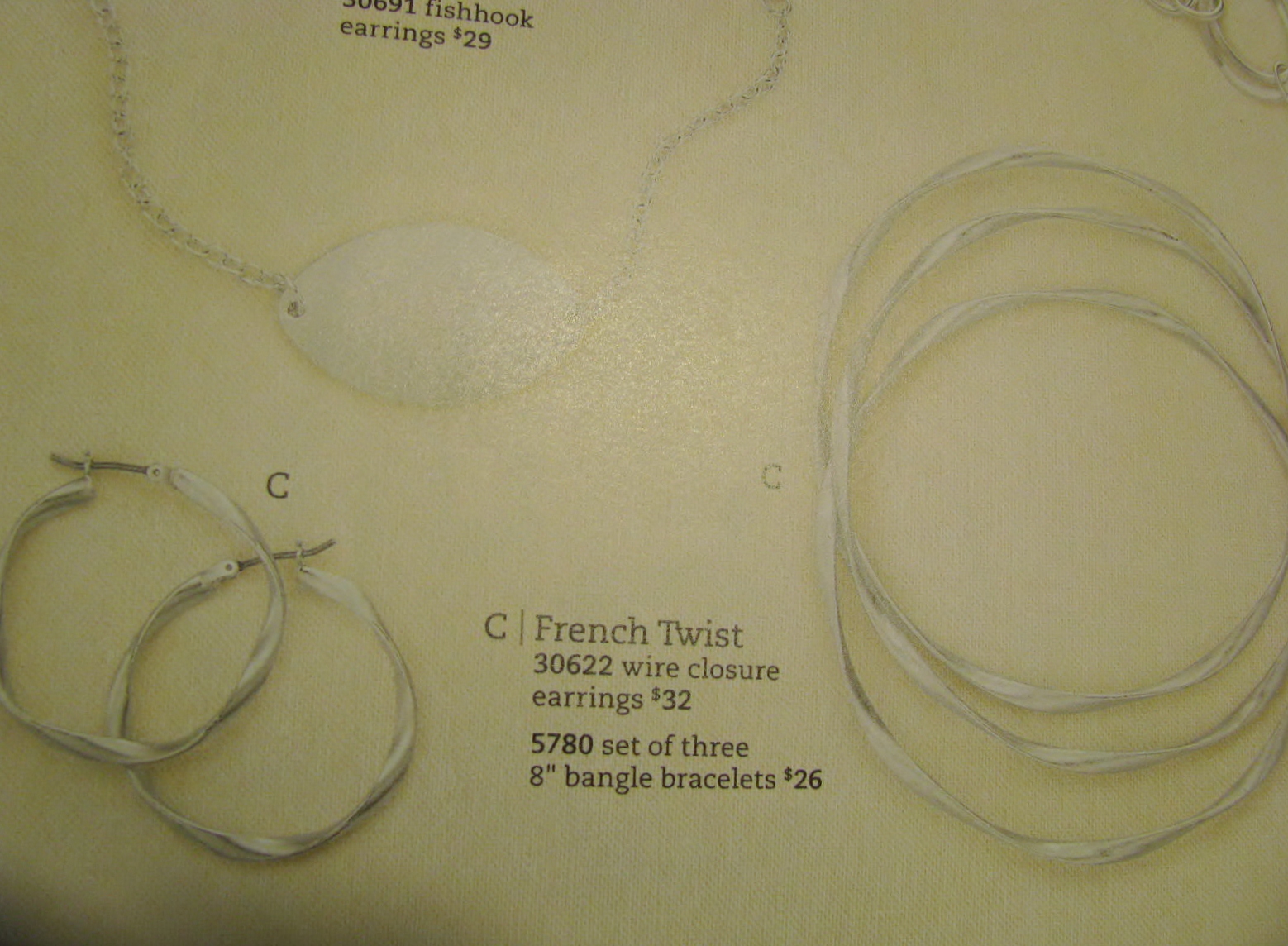 Did you pick up on the theme here? Colette, fleur-de-lis, haute spot and St. Tropez – what do they have in common? They’re all French, n’est-ce pas? And the most cleverly named set, classic silver bangle bracelets and matching earrings? The French Twist, bien sûr!