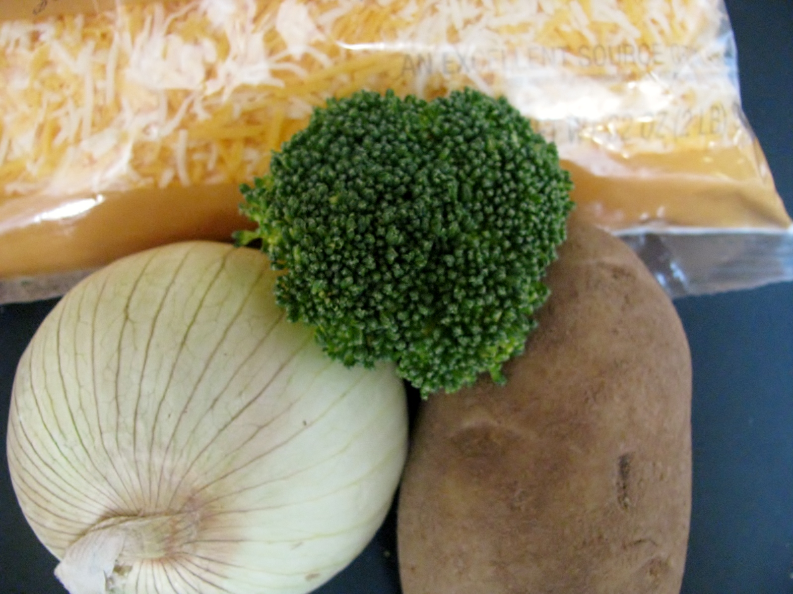 These are the main ingredients – Broccoli, potatoes, onions and cheese.