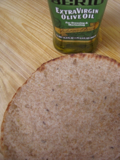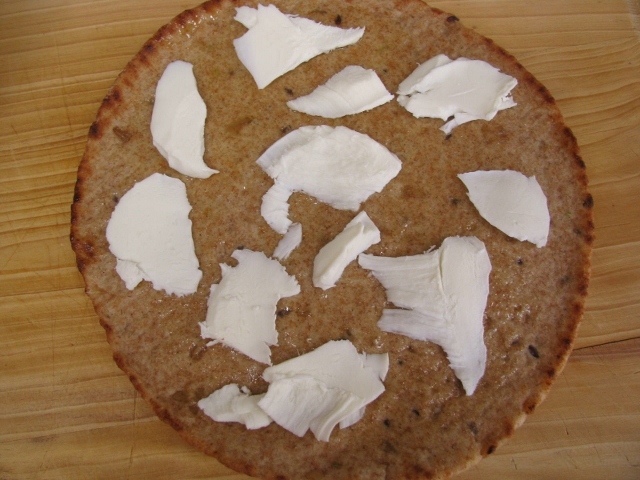This flatbread is a quick, easy lunch, or dinner with a side salad. At our house, it is served with a side of meat as the rest of my family is carnivorous. The bread is filling. Also makes a nice appetizer if you cut pieces into wedges to serve.