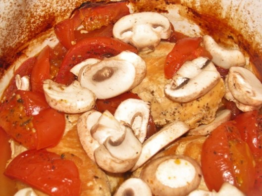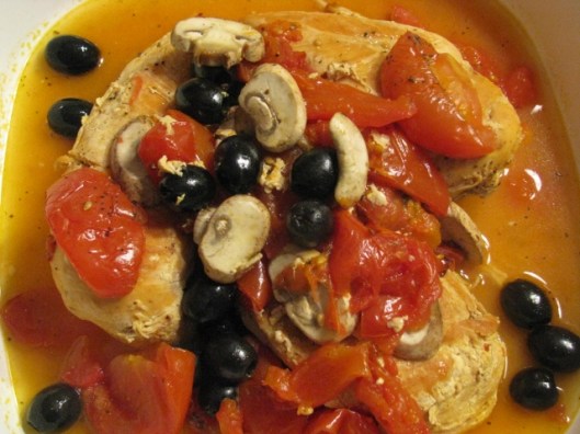 Chicken with Tomatoes, Black Olives, and Mushrooms –