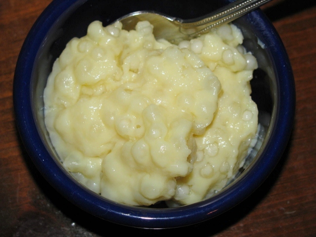 If you haven’t prepared home-made tapioca pudding, please try it sometime. The recipe is right on the box. Be sure to use a good, heavy-bottomed or non-stick pan so that you don’t burn the milk! I know you need to use a good pan. I speak from experience.