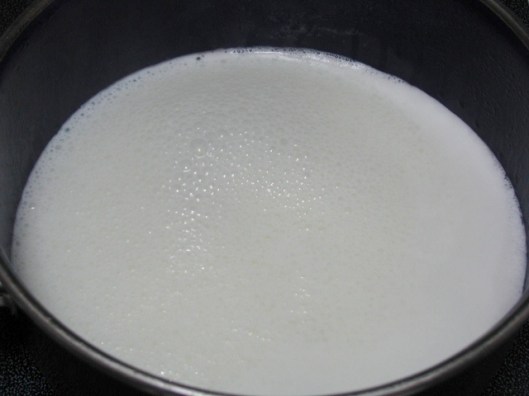 - In small sauce pan, scald milk over high heat. Or microwave milk to boiling.