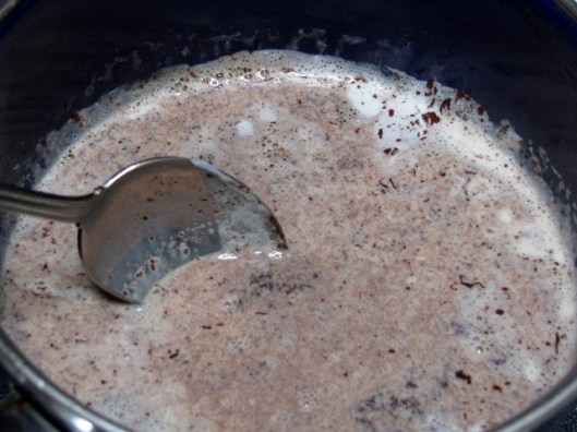 Scald WHOLE milk over high heat. You may microwave the milk to boiling if you prefer. Whichever way you do it, be sure to remove any skin that may form on the milk as that will make the pudding lumpy. I am not even sure if you have to scald milk any longer, except in this recipe, it is necesary to melt the chocolate. In the old days, you had to scald the milk to kill the bacteria, but since everything is now pasteurized, is scalding milk even necessary?