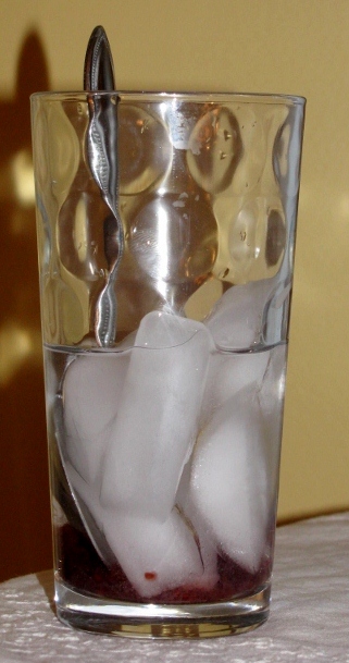 To a tall glass, add a spoonful of your choice of fruit preserves, 1 oz. of water, 1 oz. of your favorite vodka, and six ice cubes. (Absolut Vodka works nicely.)