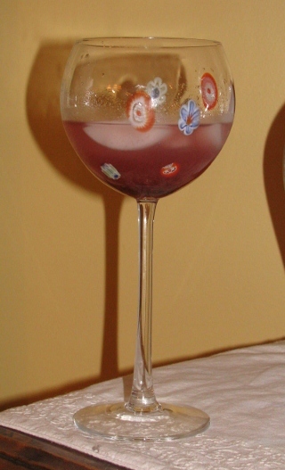 Pour into a martini glass. (I opted for a wine glass because I’m walking around the house with it and I knew I would have wasted half of the drink by sloshing it over the edges in a martini glass.)