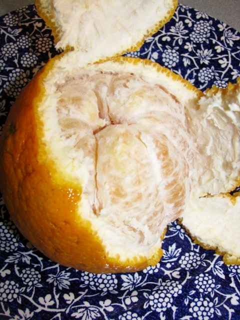 After peeling, you can pull the sections apart, as you would with an orange. The only negative for me was that the membrane around each section was a little thick, more like a grapefruit than an orange. I liked it better after I peeled the membrane away.
