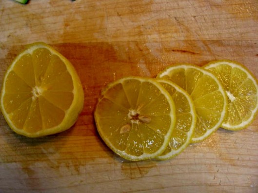 Thinly slice a lemon. If you like lemon flavor, use more slices. If you don’t like lemon, use fewer or none.