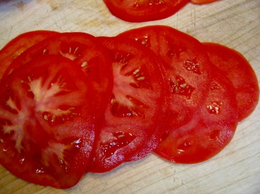 Thinly slice a tomato. If you don’t have a tomato, you can make it without.