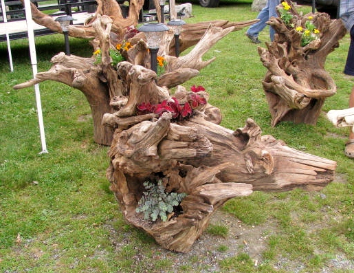 Some had pockets that were filled with dirt and used as planters. They also had some with solar powered lights attached. The seller claims that he pulls the stumps out of rivers. Technically, driftwood comes from the sea, so these are really riverwood stumps, not driftwood stumps. Perhaps I should mention that the next time I see him. Perhaps not.