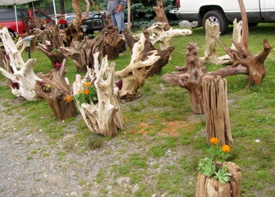 These were interesting. The sign read “Driftwood Tree Stump Lawn Ornaments.”