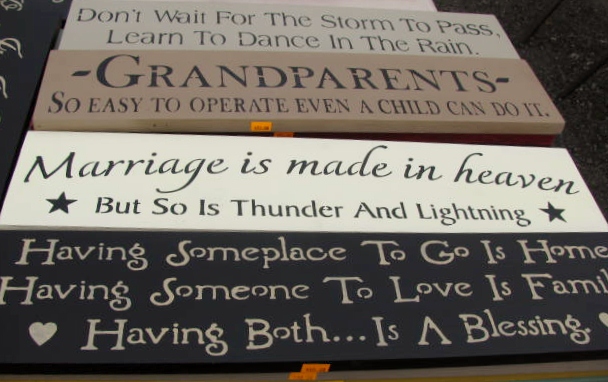 There was a man selling stenciled signs. I liked the one about marriage.