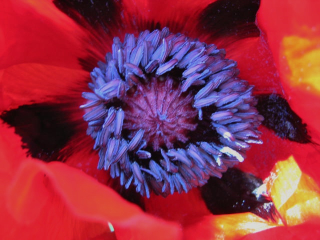 This is the center of a poppy, close up. Celebrate things up close. Flowers, food, French. Indulge in them.