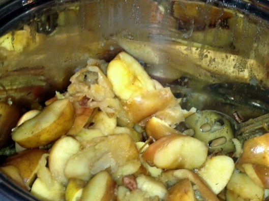 Be sure to use a pot that is large enough to hold the apples so that they are not piled over the top and the lid will still fit. (Switch to a larger pot!)