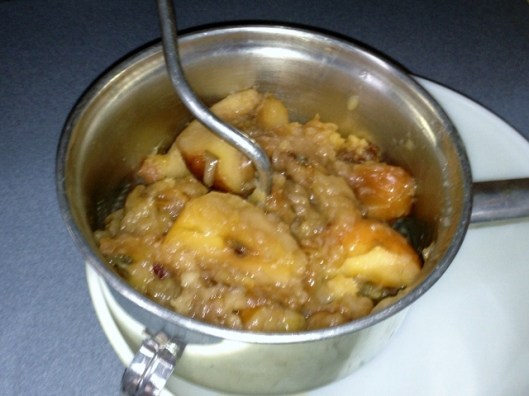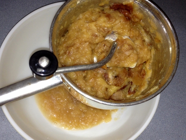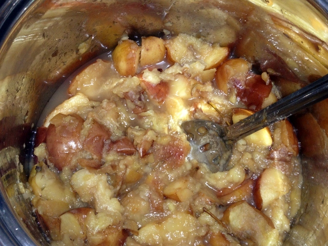 And taste it now. If you have used sweet apples, there is no need to add sugar. You won’t believe how sweet it is. I sometimes stir in a few splashes of vanilla. Or sprinkle with cinnamon. If you used Granny Smiths or some other tart apple, you may want to add sugar, but always taste it first.