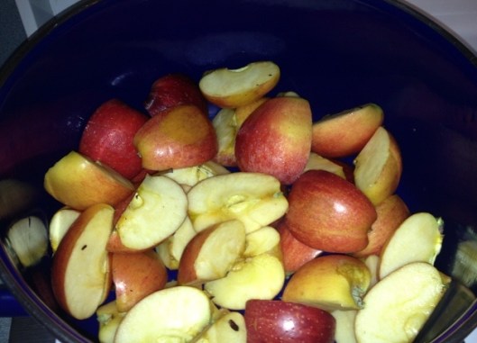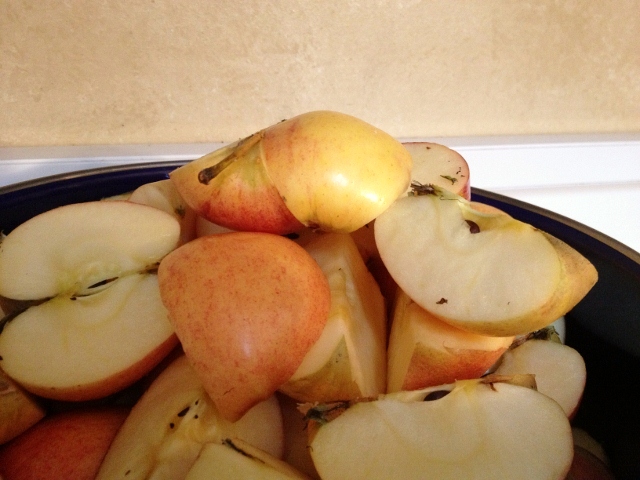 There is only one ingredient. You guessed it. Apples. You can use any type of apple that you like, but choose one that you like. It’s like cooking with wine. The cooking does not necessarily improve the flavor. If you don’t care for the taste before you cook the apple, chances are you are not going to like it after it is cooked either. I prefer Galas for applesauce. Use as many apples as you like. Use a few to make a small bowl of applesauce for dinner. Use a pot full to make a large batch.