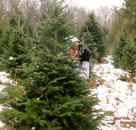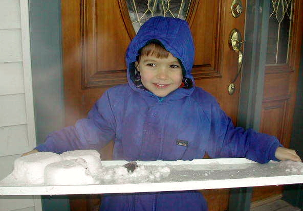 We build igloos. This has only happened two times that I can remember. You need the perfect snow and weather combinations to produce snow that can be cut into chunks. Notice the bare patch behind the red-hooded son? That is where we cut all of the snow chunks to build the igloo.